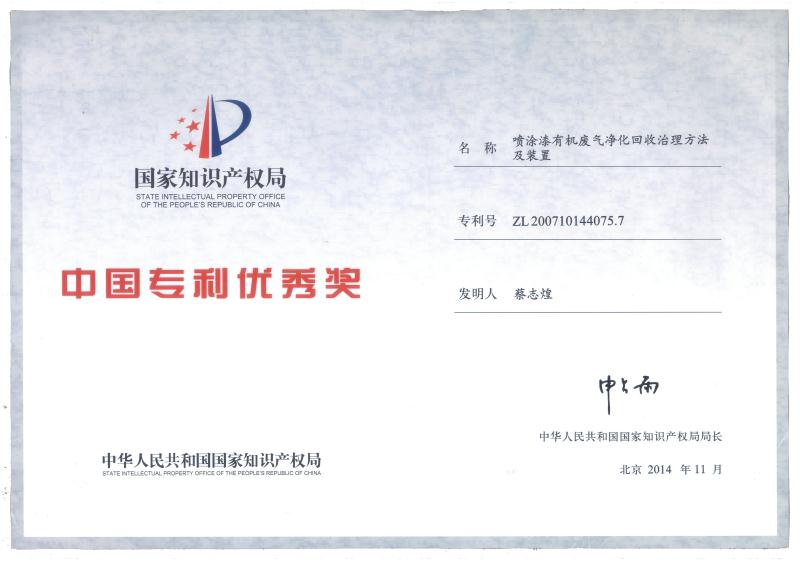 福建省科技型企業(yè)、福建省創(chuàng)新性企業(yè)、福建省首批科技小巨人、福建省“專精特新”專業(yè)化企業(yè),擁有企業(yè)研發(fā)中心、福建省有機(jī)廢氣凈化設(shè)備工程技術(shù)研發(fā)中心;公司產(chǎn)品獲得科技部、環(huán)保部、商務(wù)部、國(guó)家質(zhì)量監(jiān)督總局頒發(fā)的“國(guó)家重點(diǎn)新產(chǎn)品”證書(shū),“中低濃度揮發(fā)性有機(jī)物回收凈化裝備”被列入《國(guó)家鼓勵(lì)發(fā)展的重大環(huán)保技術(shù)裝備目錄(2017年版)》;公司核心發(fā)明專利分別獲得了中國(guó)專利獎(jiǎng)優(yōu)秀獎(jiǎng)、福建省專利獎(jiǎng)二等獎(jiǎng)等專利獎(jiǎng)項(xiàng),其中兩個(gè)核心技術(shù)分別獲得福建省技術(shù)發(fā)明獎(jiǎng)二等獎(jiǎng)、福建省科學(xué)技術(shù)進(jìn)步獎(jiǎng)二等獎(jiǎng);公司